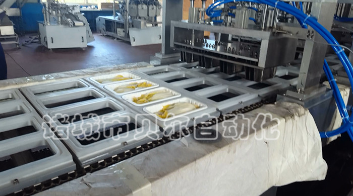 一、產(chǎn)品簡介 我廠作為專業(yè)的封碗封盒包裝機廠家,自動封盒包裝機是我廠2002年開發(fā)的產(chǎn)品,經(jīng)過十六年的研發(fā)與完善,目前已經(jīng)申請六項國家專利,該機能夠自動落盒,將塑料盒準(zhǔn)確落入模具中,自動打印生產(chǎn)日期及批號,自動抽真空包裝,或者抽真空后充入N2、02、CO2混合氣體。貝爾盒式包裝機以其成熟技術(shù),高端原裝進口主機配件,高效使用性能,